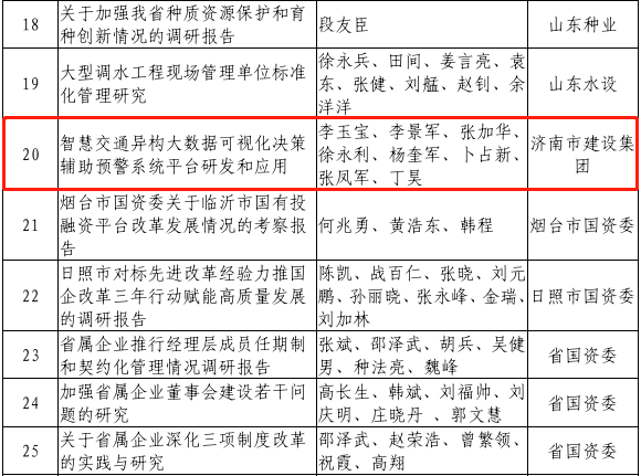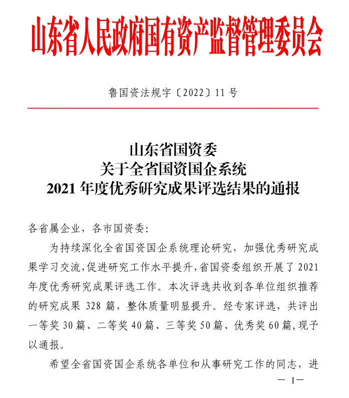 近日,山東省國資委發(fā)布了《山東省國資委關(guān)于全省國資國企系統(tǒng)2021年度優(yōu)秀研究成果評選結(jié)果的通報》(魯國資法規(guī)字〔2022〕11號)文件,濟(jì)南城市建設(shè)集團(tuán)總工辦牽頭,集團(tuán)所屬山東金宇信息集團(tuán)有限公司研究的《智慧交通異構(gòu)大數(shù)據(jù)可視化決策輔助預(yù)警系統(tǒng)平臺研發(fā)與應(yīng)用》成果榮獲“全省國資國企系統(tǒng)2021年度優(yōu)秀研究成果”一等獎。