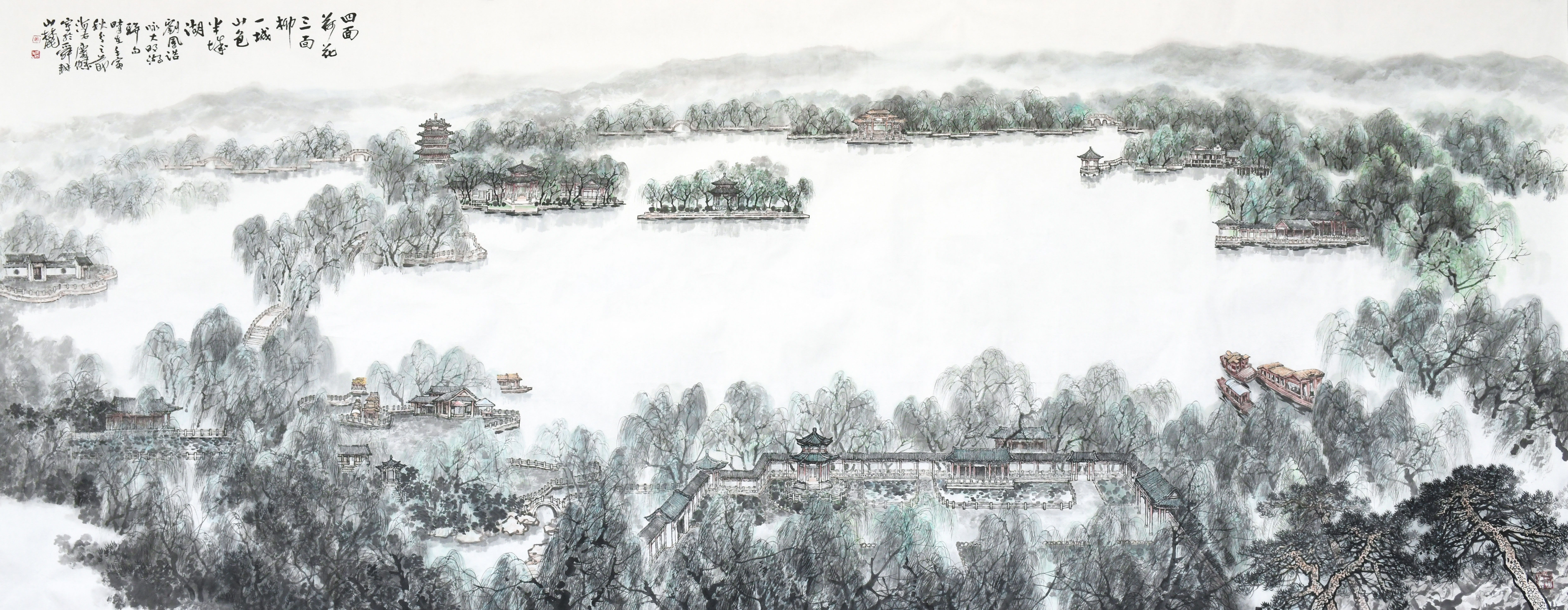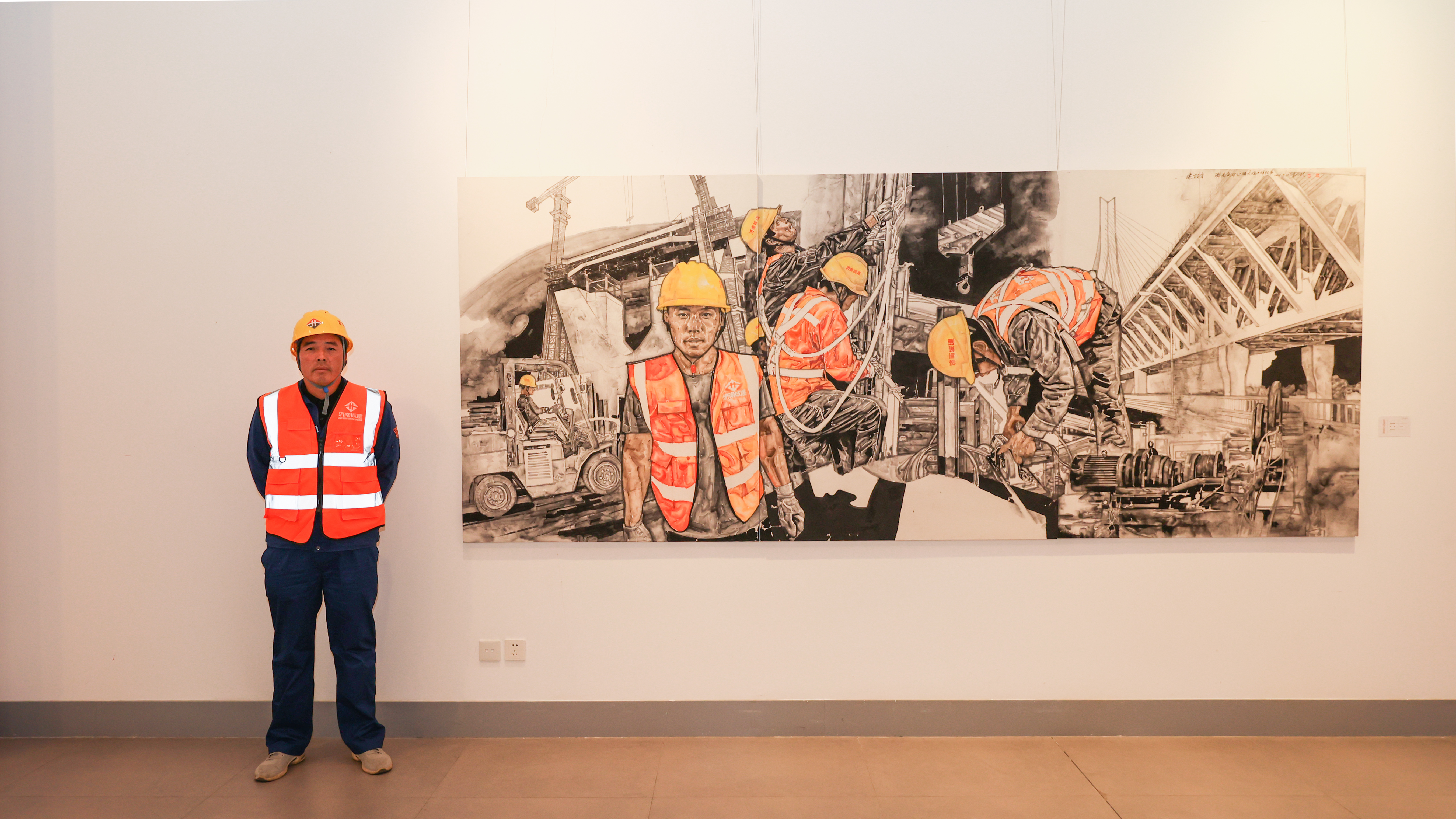 本次展覽特邀52位全國(guó)知名藝術(shù)家,聚焦新時(shí)代重大現(xiàn)實(shí)題材、黃河文化、“二安”文化、泉文化、紅色文化及廉潔文化等主題,創(chuàng)作并展出54件作品,形式包括國(guó)畫、油畫、漆畫、漫畫等題材。作品以人民為中心,與時(shí)代同步伐,集思想性、藝術(shù)性和學(xué)術(shù)性為一體,展現(xiàn)了濟(jì)南城市建設(shè)集團(tuán)“城建鐵軍”在推動(dòng)省會(huì)由“大明湖時(shí)代”邁向“黃河時(shí)代”的歷史進(jìn)程中履行國(guó)企擔(dān)當(dāng)、勇于攻堅(jiān)克難的新時(shí)代風(fēng)采,展示錦繡泉城十年蝶變、高質(zhì)量發(fā)展的新時(shí)代風(fēng)貌。