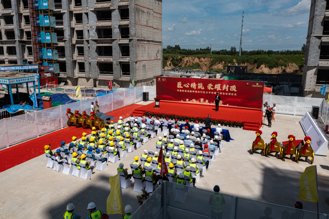 8月27日,濟南新舊動能轉換起步區(qū)太平安置區(qū)項目北地塊1號樓和5號樓同時封頂,為該項目首批封頂樓體,標志著項目建設取得階段性成果,將進入主體陸續(xù)封頂的新階段。起步區(qū)管委會、濟南城市建設集團、中建五局及各參建單位的相關負責同志,一線建設者代表參加封頂儀式。