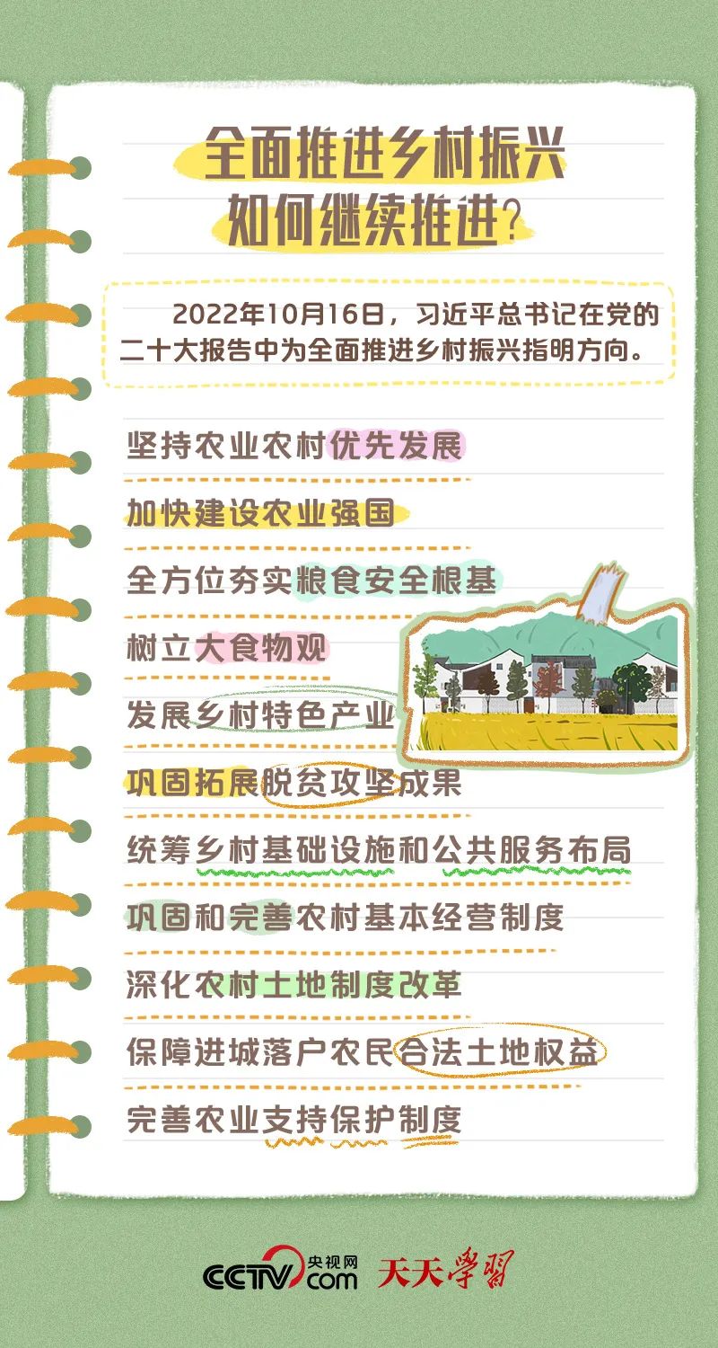 黨的二十大閉幕不到一周,總書記來到陜西延安、河南安陽兩地考察??倳浽诳疾熘袕娬{(diào),要全面學(xué)習(xí)貫徹黨的二十大精神,堅持農(nóng)業(yè)農(nóng)村優(yōu)先發(fā)展,發(fā)揚延安精神和紅旗渠精神,鞏固拓展脫貧攻堅成果,全面推進(jìn)鄉(xiāng)村振興,為實現(xiàn)農(nóng)業(yè)農(nóng)村現(xiàn)代化而不懈奮斗。