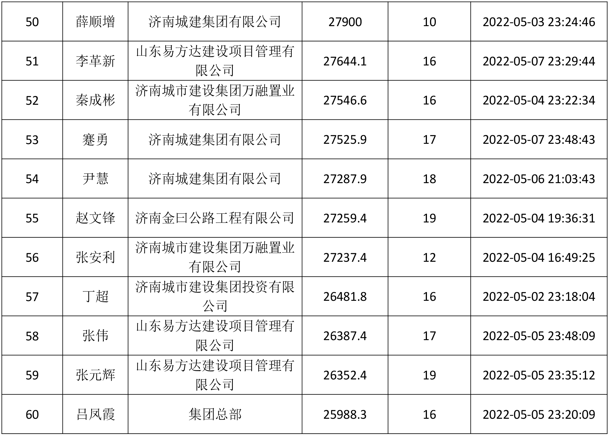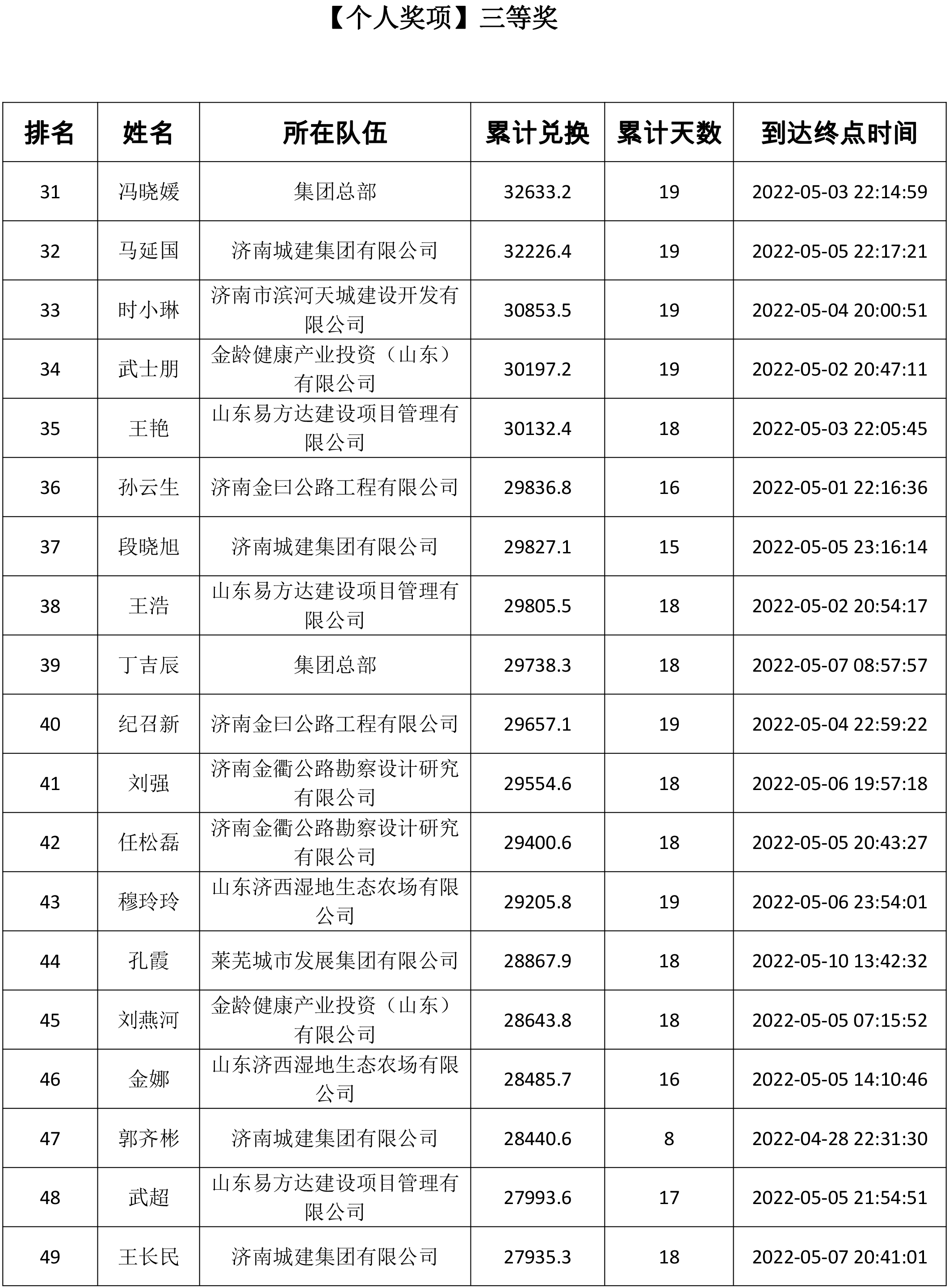 由共青團(tuán)濟(jì)南城市建設(shè)集團(tuán)有限公司委員會(huì)主辦,共青團(tuán)濟(jì)南金曰公路工程有限公司委員會(huì)、濟(jì)南新城文化傳媒有限公司承辦的“青春有夢(mèng) 建設(shè)無(wú)疆”——職工線上健步走活動(dòng)于5月13日正式落下帷幕。此次活動(dòng)共持續(xù)19天,參與人數(shù)達(dá)1716人。