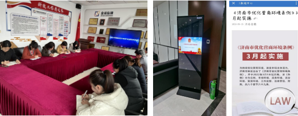 《濟南市優(yōu)化營商環(huán)境條例》(以下簡稱《條例》)于今年3月1日起施行,根據(jù)市國資委《關(guān)于開展優(yōu)化營商環(huán)境法治宣傳月活動的通知》要求,為貫徹實施好《條例》,持續(xù)優(yōu)化營商環(huán)境,3月4日-31日,集團及各子公司積極開展了優(yōu)化營商環(huán)境法治宣傳月活動?;顒悠陂g,集團在微信公眾號推送《<濟南市優(yōu)化營商環(huán)境條例>3月起實施》推文,同時通過電子屏投放、制作易拉寶等多種形式進行宣傳,不斷強化干部職工優(yōu)化營商環(huán)境的理念,營造良好輿論氛圍。