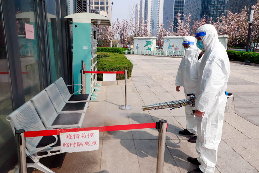 (采用全自動(dòng)脈沖動(dòng)力水霧煙霧彌霧機(jī)對(duì)西城大廈、地下停車場(chǎng)、避難通道等公共區(qū)域進(jìn)行高溫蒸汽專業(yè)消殺,并在西客站東廣場(chǎng)南北車庫(kù)高鐵出入口安裝熱成像測(cè)溫一體機(jī),進(jìn)一步加強(qiáng)對(duì)重點(diǎn)區(qū)域、重點(diǎn)部位疫情防控。)