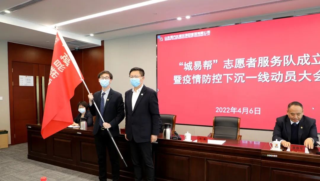 會(huì)議宣讀了公司工會(huì)關(guān)于《山東易方達(dá)建設(shè)項(xiàng)目管理有限公司關(guān)于成立“城易幫”志愿者服務(wù)隊(duì)的決定》,公司黨委書(shū)記、董事長(zhǎng)牛勇向“城易幫”志愿者服務(wù)隊(duì)進(jìn)行授旗。