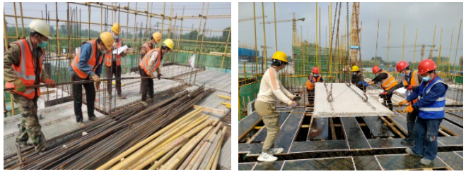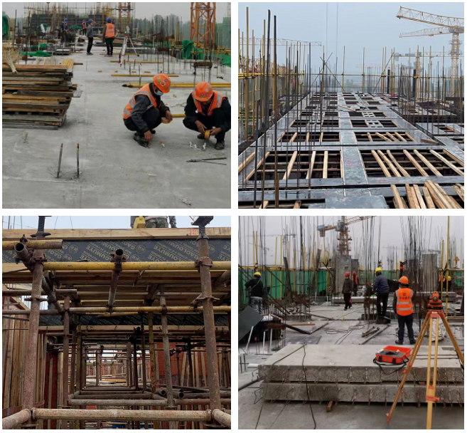 目前,1#樓至14#號(hào)樓正進(jìn)行主體結(jié)構(gòu)施工,地下室準(zhǔn)備進(jìn)行基礎(chǔ)驗(yàn)收;車庫(kù)7#8#樓中間車庫(kù)混凝土澆筑、7#樓北側(cè)車庫(kù)支模架施工、12#14#樓中間車庫(kù)頂板鋪設(shè)。
