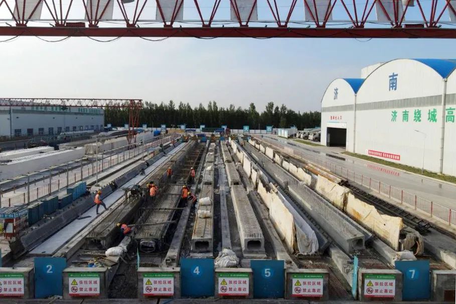 濟南繞城高速公路二環(huán)線西環(huán)段二分部全長約19公里,工程涵蓋63座橋梁,需要預制箱梁1433片,預制空心板1300片。為保證梁板預制工作,大西環(huán)項目部科學謀劃,精心調(diào)度,克服疫情、環(huán)保等不利因素,從生產(chǎn)計劃制定、原材料供應、梁板吊裝等方面提前策劃,周密部署,掀起了一波又一波施工熱潮,為確保大西環(huán)年底通車提供了有力保障。