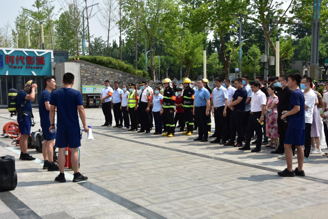消防演練模擬城發(fā)廣場出現(xiàn)火情,現(xiàn)場迅速啟動(dòng)應(yīng)急預(yù)案,指揮部組織調(diào)度應(yīng)急搶險(xiǎn)組、安全保衛(wèi)組、人員疏散組、醫(yī)療救護(hù)組分頭行動(dòng),完成現(xiàn)場滅火、人員撤離、物資轉(zhuǎn)移、傷員救治等工作。