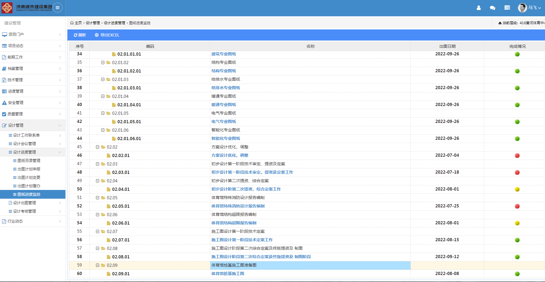 為進(jìn)一步強(qiáng)化設(shè)計(jì)源頭管理,克服設(shè)計(jì)過(guò)程環(huán)節(jié)多、線下管控難度較大的實(shí)際,工程四部OA信息平臺(tái)開(kāi)發(fā)研制設(shè)計(jì)管理業(yè)務(wù)功能模塊并在黃河體育中心項(xiàng)目全面應(yīng)用。通過(guò)設(shè)計(jì)管理業(yè)務(wù)功能模塊,實(shí)現(xiàn)出圖計(jì)劃、圖紙上傳、分發(fā)簽收、圖紙會(huì)審、變更、圖紙文檔的統(tǒng)一編碼與存檔,有效提升設(shè)計(jì)管理中工作任務(wù)安排、接收及出圖計(jì)劃整體把控。