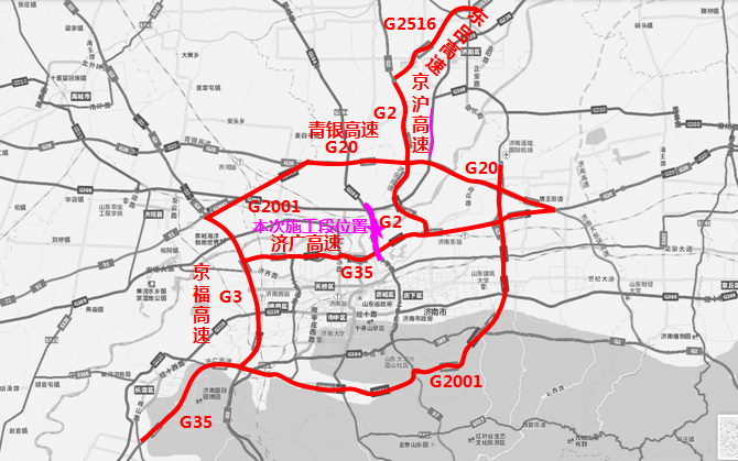 市區(qū)過路車輛可通過各城市快速路、干線道路繞行,經(jīng)濟濼路隧道、濟南黃河鳳凰大橋、濟南建邦黃河大橋等道路向北跨越黃河。