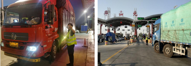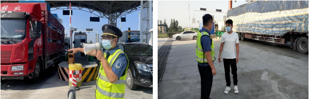 節(jié)前與轄區(qū)防疫部門溝通,節(jié)假日車流量增大,提前增派防疫人員,增加場所碼掃描標(biāo)識,全力保障收費站暢通。