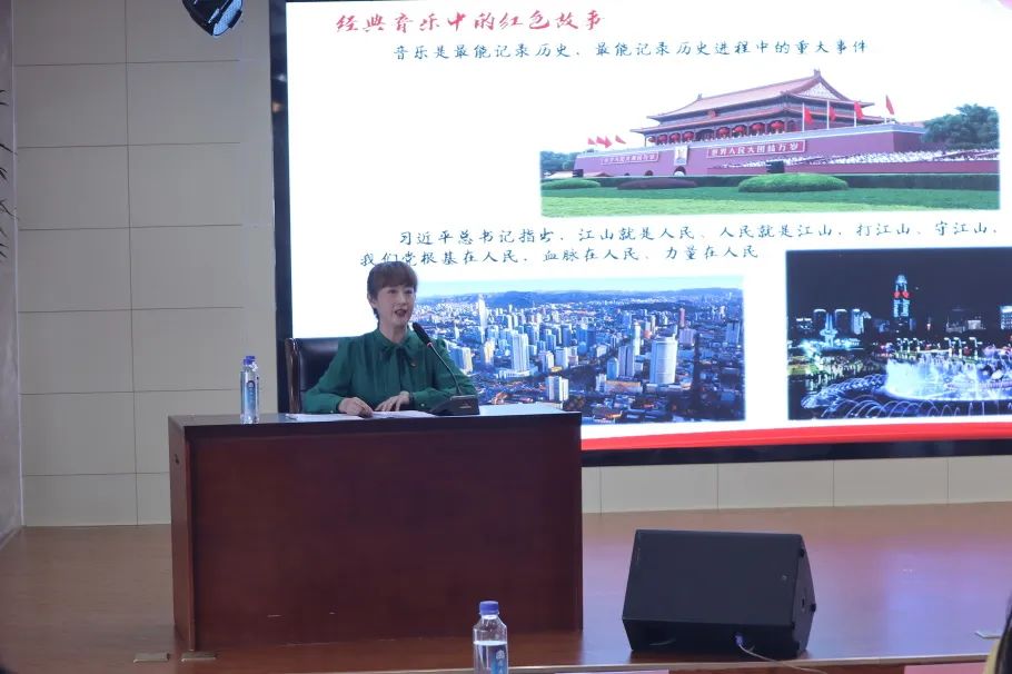 同時(shí),本次學(xué)習(xí)還特別邀請(qǐng)到濟(jì)南市青少年宮團(tuán)隊(duì)帶來(lái)音樂(lè)黨課《經(jīng)典音樂(lè)中的紅色故事》。課程用“理論授課+音樂(lè)作品展演”的形式,以時(shí)間軸串聯(lián)講解經(jīng)典音樂(lè)著作。黨課分《送別》與震驚中外的五四運(yùn)動(dòng)、《國(guó)民革命歌》與轟轟烈烈的大革命、《松花江上》與全民族抗戰(zhàn)的開(kāi)始、《軍民大生產(chǎn)》與根據(jù)地的艱苦斗爭(zhēng)、《你是燈塔》與新中國(guó)的成立、《唱支山歌給黨聽(tīng)》與社會(huì)主義建設(shè)的蓬勃開(kāi)展、《春天的故事》與改革開(kāi)放等七個(gè)部分,一首首耳熟能詳?shù)囊魳?lè)作品以獨(dú)唱、合唱、二胡獨(dú)奏、大提琴演奏、舞蹈等藝術(shù)形式重新演繹,歷史畫(huà)卷伴隨音樂(lè)徐徐展開(kāi),在浸潤(rùn)式教育中傳承紅色基因,引導(dǎo)學(xué)員感受藝術(shù)魅力、匯聚精神力量、激發(fā)前行動(dòng)力。