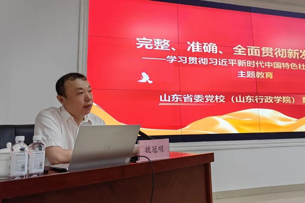 活動邀請省委黨校中共黨史教研部副教授、山東省習(xí)近平新時代中國特色社會主義思想研究中心研究員魏冠明進(jìn)行專題授課,魏冠明以“完整、準(zhǔn)確、全面貫徹新發(fā)展理念--學(xué)習(xí)貫徹習(xí)近平新時代中國特色社會主義思想主題教育”為主題,全面解讀了新發(fā)展理念的內(nèi)涵要義、政策啟示和重大意義,推動黨員干部進(jìn)一步學(xué)懂弄通做實(shí)習(xí)近平新時代中國特色社會主義思想。