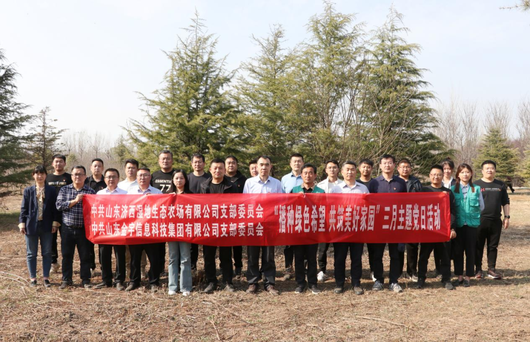 山東金宇信息科技集團黨支部與濟西濕地生態(tài)農(nóng)場黨支部聯(lián)合開展“播種綠色希望 共筑美好家園”義務(wù)植樹主題黨日活動