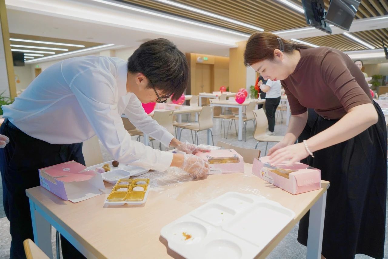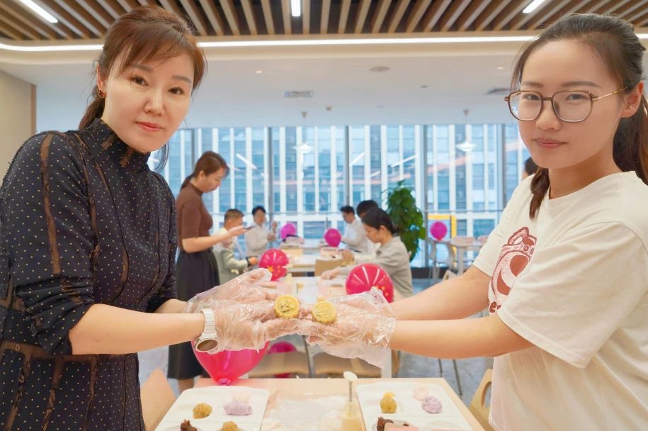 活動(dòng)現(xiàn)場(chǎng),糕點(diǎn)師傅悉心指導(dǎo),員工們踴躍參與,并交流分享月餅的制作方法和文化內(nèi)涵,在動(dòng)手制作中感受傳統(tǒng)文化魅力和濃厚的節(jié)日氛圍。