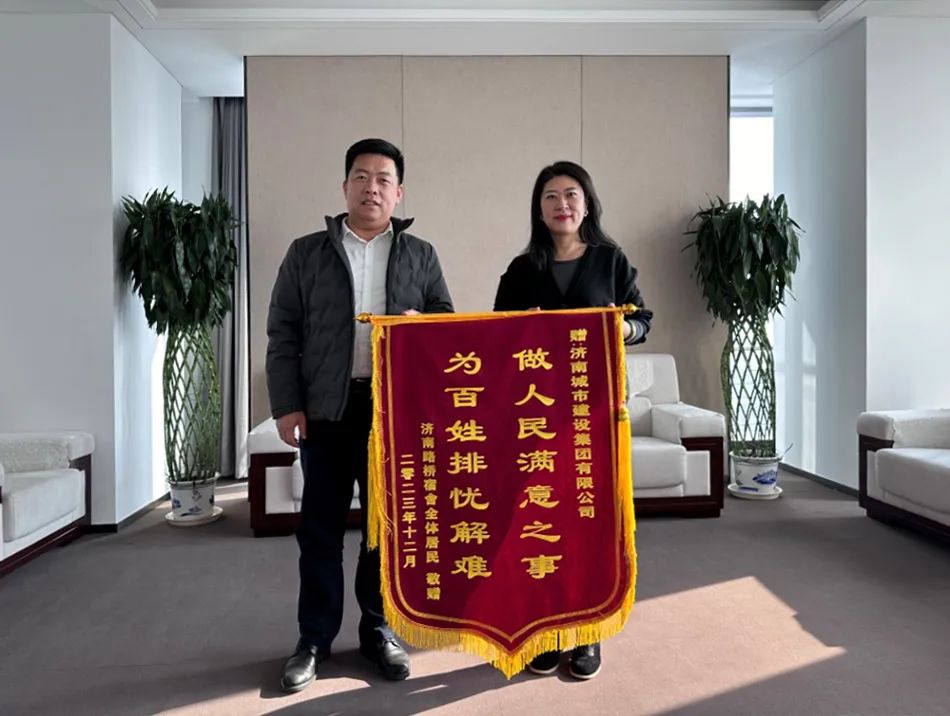 12月26日,天橋區(qū)濼口街道黨工委書記趙繼展一行到訪濟南城市建設集團并贈送錦旗,天橋區(qū)濼口街道黨工委副書記、辦事處主任胡建國,集團綜合辦公室、濱河天城相關負責同志參加活動。