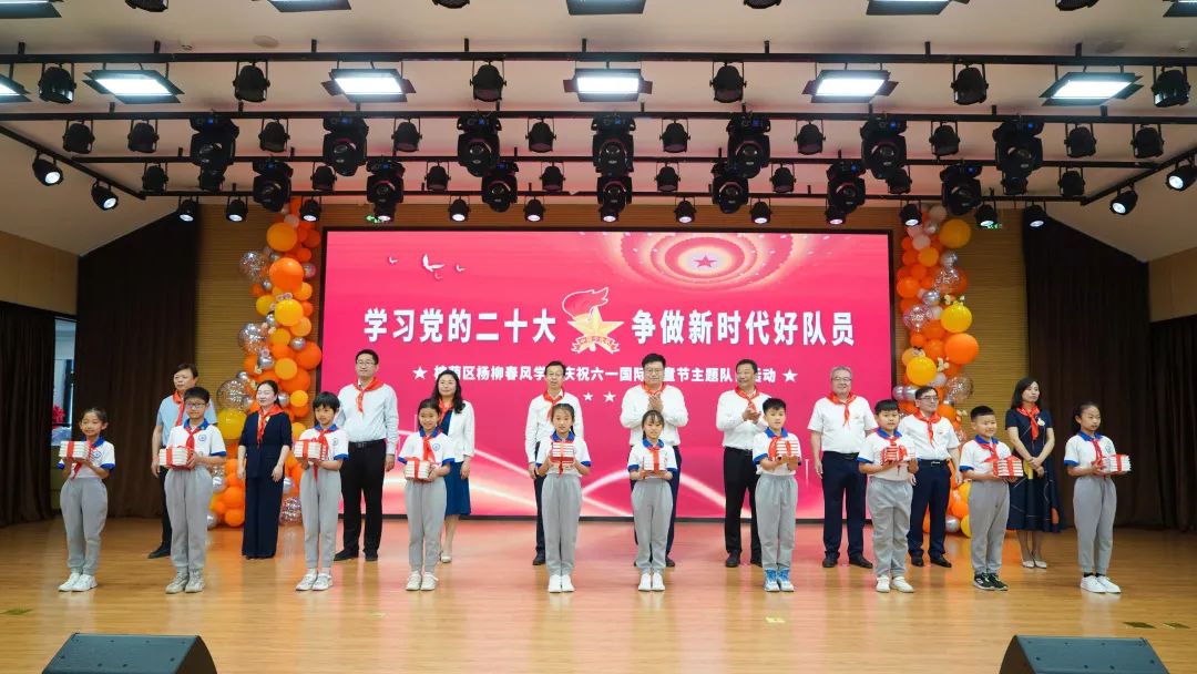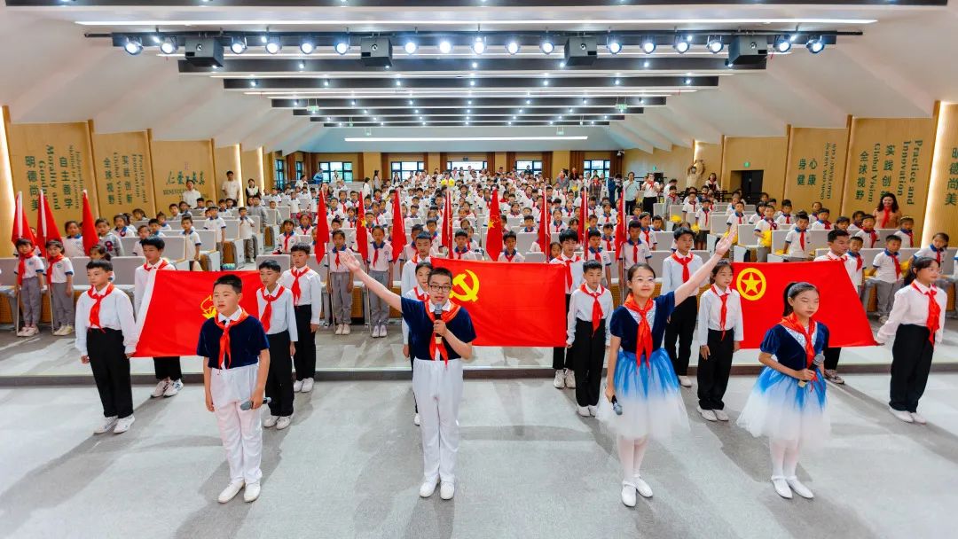 活動(dòng)現(xiàn)場(chǎng),與會(huì)嘉賓們?yōu)樾氯腙?duì)的少先隊(duì)員們佩戴了紅領(lǐng)巾,為新建中隊(duì)授中隊(duì)旗,見(jiàn)證了黨、團(tuán)、隊(duì)三旗傳遞,徐冬梅為孩子們送上了“六一”寄語(yǔ),建設(shè)集團(tuán)為孩子們贈(zèng)送了入隊(duì)成長(zhǎng)禮物。