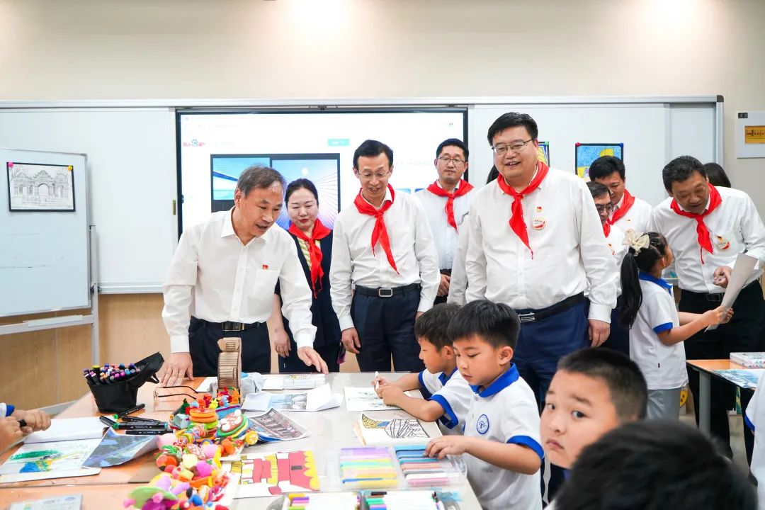 活動(dòng)結(jié)束后,孫常建一行在楊柳春風(fēng)學(xué)校進(jìn)行了實(shí)地參觀調(diào)研,了解了書香校園建設(shè)活動(dòng),并與孩子們進(jìn)行了親切交流。孩子們熱情洋溢地介紹了“槐蔭少年說(shuō)”黨團(tuán)隊(duì)一體化品牌建設(shè)活動(dòng)、“我是黃河岸邊好少年”黃河文化項(xiàng)目化學(xué)習(xí)特色課程、“我眼中的康養(yǎng)名城、活力槐蔭”畫展和手工展、“家住槐蔭‘育’見(jiàn)成長(zhǎng)”教育品牌、學(xué)校校訓(xùn)和南北融合辦學(xué)理念等情況,并進(jìn)行了古箏、寫生、經(jīng)典誦讀等美育教育特色活動(dòng)表演,美術(shù)社團(tuán)、舞蹈社團(tuán)、合唱團(tuán)、足球社團(tuán)、啦啦隊(duì)的成員代表們進(jìn)行了成果展示。