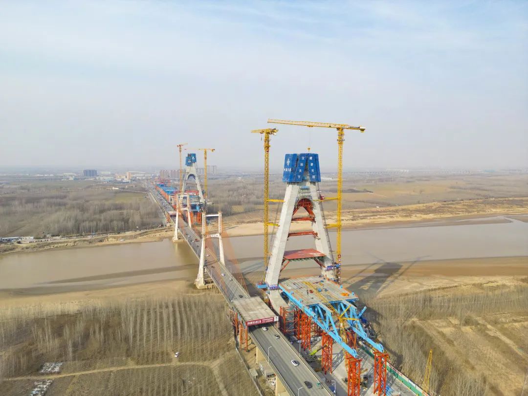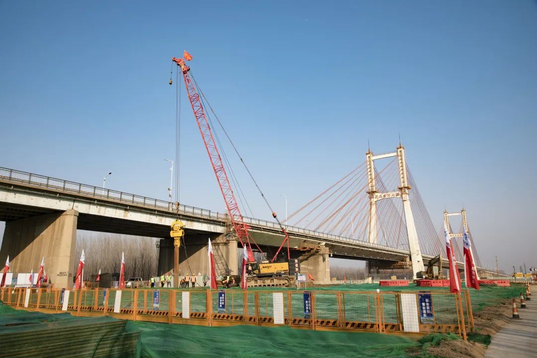 黃河流域濟(jì)南段,濟(jì)南黃河公路大橋東側(cè),黃河上第一座不等跨并橋建設(shè)工程,同時也是黃河上跨徑最大、鋼橋總長最長的公軌分層合建橋梁,濟(jì)南黃河公路大橋改擴(kuò)建工程正在有序推進(jìn)工程建設(shè)。1982年建成的當(dāng)時亞洲跨徑最大的濟(jì)南黃河公路大橋,在服役41年之后,見證著又一次“歷史跨越”。