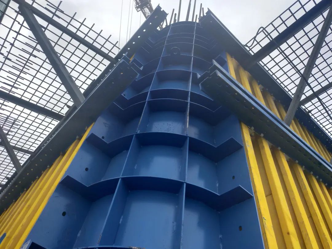 為開辟施工空間,項目自主研發(fā)了非鋼管落地支撐體系的新型全封閉液壓爬模系統(tǒng),將液壓爬模的支點從地面轉(zhuǎn)移到柱體,充分利用了既有結(jié)構(gòu),最大限度讓出施工組織空間。同時全封閉液壓爬模系統(tǒng)也在最大程度上保障了施工人員安全。