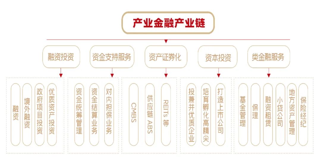 按照產(chǎn)業(yè)金融產(chǎn)業(yè)鏈發(fā)展規(guī)劃,依托國泰君安、中信證券、伽利略資本等專業(yè)投研機(jī)構(gòu),篩選優(yōu)質(zhì)投資標(biāo)的,以投帶引,獲得財(cái)務(wù)性投資回報(bào),同時(shí)培育孵化產(chǎn)業(yè)項(xiàng)目,布局優(yōu)勢產(chǎn)業(yè);借助科研院所、高校等科研資源,尋找科技成果轉(zhuǎn)化類優(yōu)質(zhì)項(xiàng)目,提前布局高精尖產(chǎn)業(yè),聚合產(chǎn)業(yè)資源,打造產(chǎn)業(yè)集群;利用集團(tuán)資源優(yōu)勢,及時(shí)捕獲資產(chǎn)證券化渠道信息,豐富CMBS、供應(yīng)鏈ABS、REITs等方式方法,產(chǎn)業(yè)鏈協(xié)同推動凈收益好的項(xiàng)目資產(chǎn)證券化,盤活資產(chǎn),降低集團(tuán)整體融資成本。