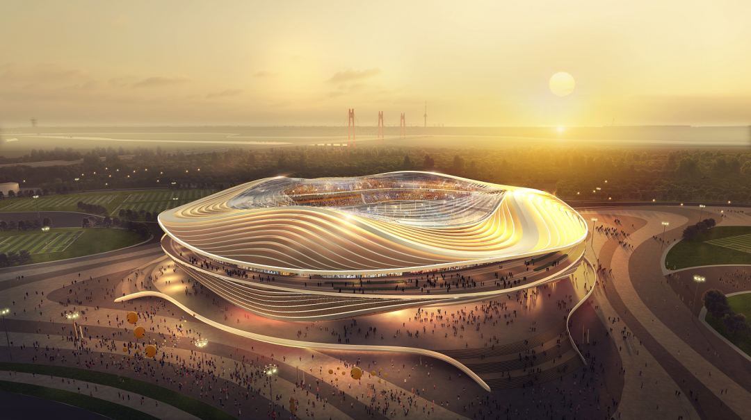 濟(jì)南新舊動(dòng)能轉(zhuǎn)換起步區(qū)黃河體育及科技園區(qū)基礎(chǔ)設(shè)施一期工程位于濟(jì)南市起步區(qū)崔寨片區(qū)內(nèi),緊鄰黃河建設(shè),北至鳳凰路、南至華河路、西至黃河大道、東至規(guī)劃路,包括專業(yè)足球場(chǎng)、體育館、游泳館及全民健身中心。其中,專業(yè)足球場(chǎng)總建筑面積約19.7萬(wàn)平方米,地下1層,地上5層,建筑高度60米,場(chǎng)館外圈直徑達(dá)280米,索桁架最大懸挑長(zhǎng)度約45米,總用鋼量2.34萬(wàn)噸。建成后可容納6萬(wàn)余人,是省內(nèi)首座超大型專業(yè)足球場(chǎng),國(guó)內(nèi)最大的專業(yè)足球場(chǎng)之一,具備承辦世俱杯、亞洲杯等國(guó)際足聯(lián)、亞足聯(lián)的頂尖賽事能力。