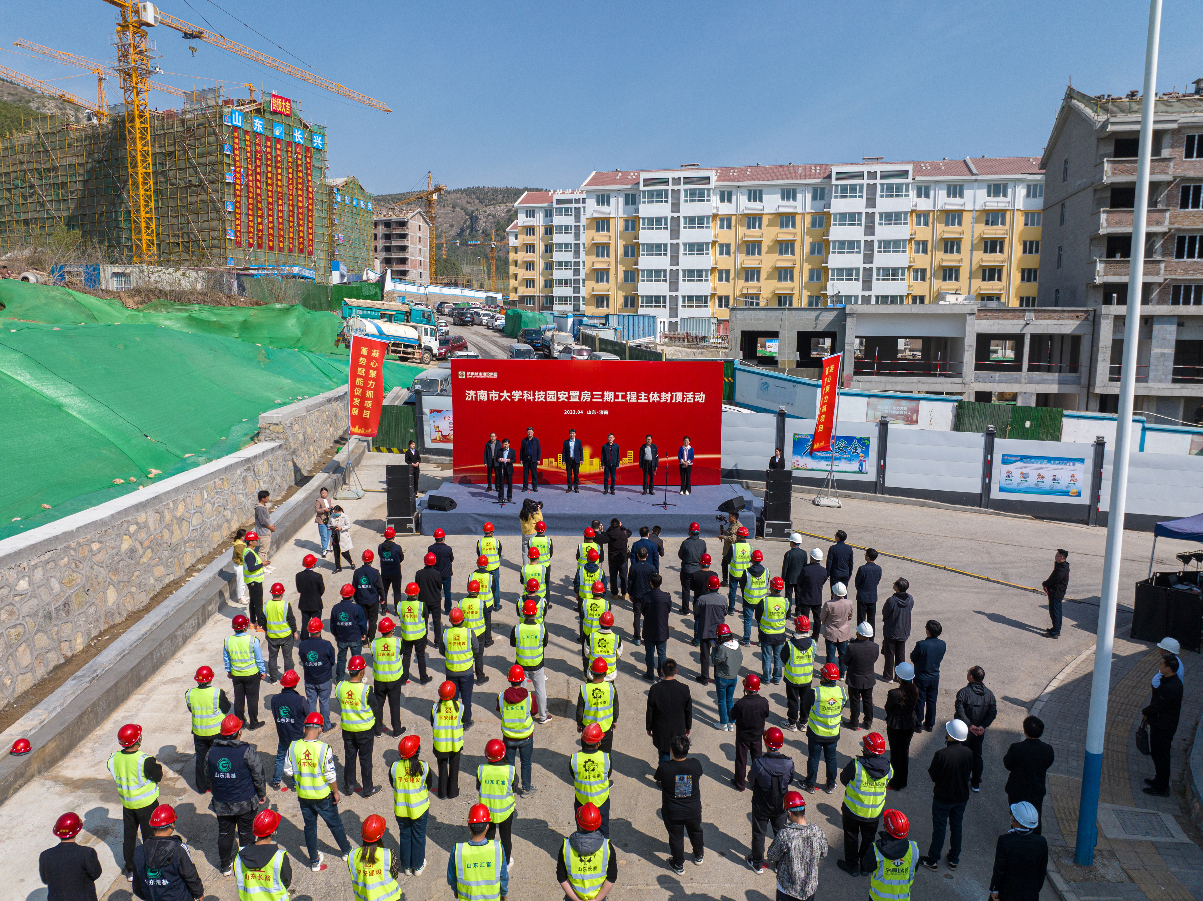 4月2日,由濟南城市建設集團負責建設的濟南市大學科技園安置房三期工程(北區(qū))長興標段主體封頂,項目建設進入新階段。長清區(qū)委副書記、區(qū)長王士強,建設集團黨委副書記、總經理許為民,建設集團總經理助理、安全總監(jiān)解漢忠出席活動,長清區(qū)崮云湖街道辦事處、建設集團相關部門負責同志,項目管理、審計、監(jiān)理、施工單位代表參加活動。