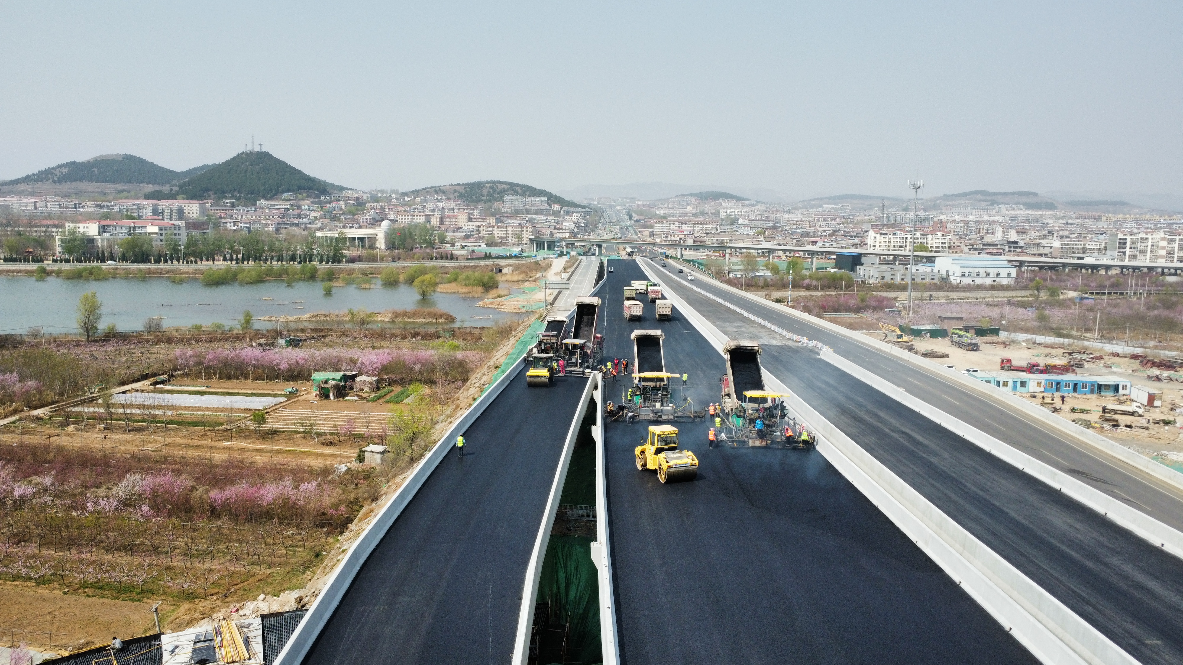 近日,由建設(shè)集團所屬濟南金曰公路工程有限公司承建的S103濟棗線市中紅符路口南至濟南泰安界段旅游公路SG-9標(biāo)段仲宮大橋互通立交完成瀝青上面層右幅攤鋪,項目按下通車“加速鍵”。