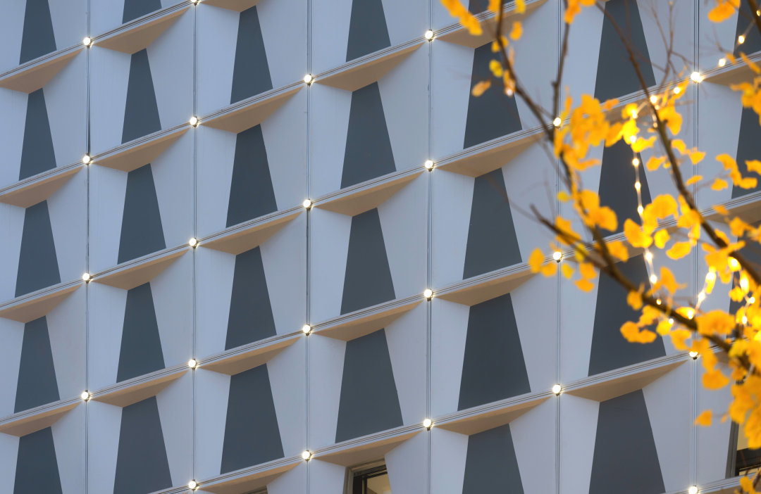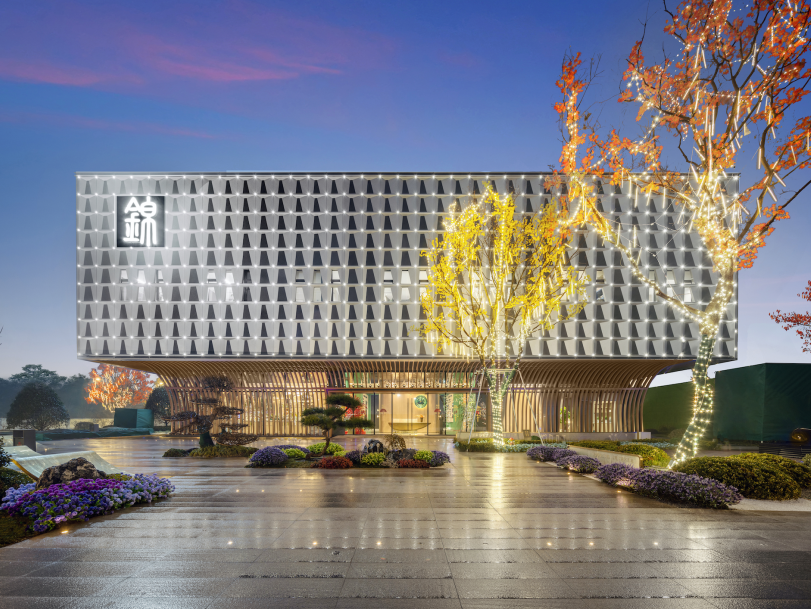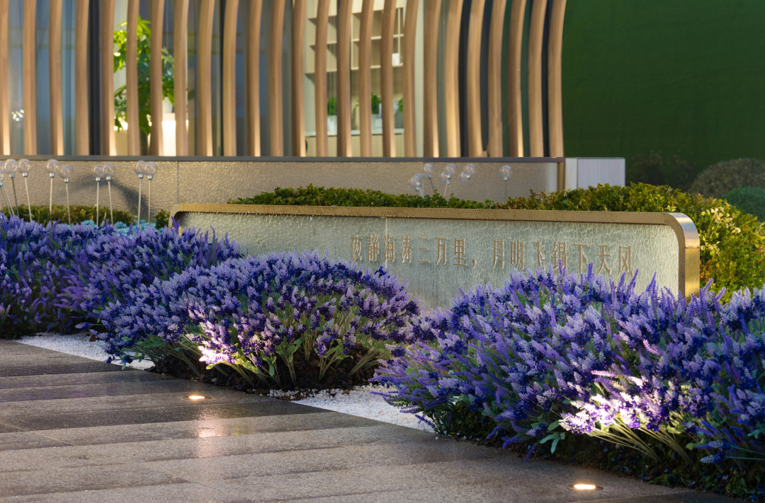 天風(fēng)錦都項(xiàng)目位于濟(jì)南市槐蔭區(qū),遠(yuǎn)觀風(fēng)云平靜,近看風(fēng)帆揚(yáng)起,潺潺流水與汩汩噴泉的水景,加之抽象風(fēng)帆,隔離嘈雜的城市道路與車流,形成廣場(chǎng)藝術(shù)空間。鄰邊水景環(huán)抱,遠(yuǎn)處螢火點(diǎn)點(diǎn),映襯建筑,大面積白色折線藝術(shù)的景墻,形成半圍合室外洽談區(qū),藝術(shù)廣場(chǎng)白天是中小型營銷活動(dòng)的舉辦地、唯美浪漫的室外洽談區(qū),功能復(fù)合,靈活多變。