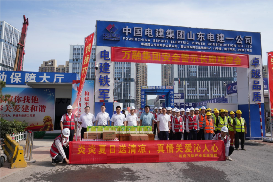 同時,與會領(lǐng)導(dǎo)向一線建設(shè)者送上防暑降溫慰問品。