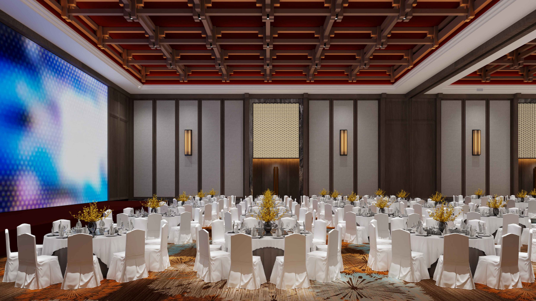 酒店室內宴會及會議總面積達5000平方米,酒店內最大無柱式多功能宴會廳面積達1100平方米,配備P2.5高清LED顯示屏,能夠承接60桌宴會及千人會議;酒店共有客房352套,以及配有280平方米行政酒廊及各類型餐廳,酒店還配備健身房、瑜伽室、乒乓球室及室內泳池,康樂區(qū)域總面積超過2300平方米。