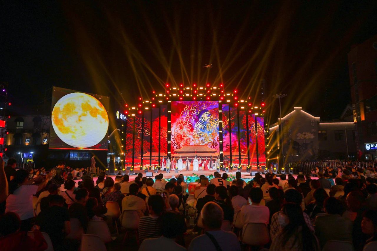 音樂、舞蹈、雜技、燈光秀……街區(qū)上流光溢彩、燈火輝煌,舞臺(tái)上衣香袂影、霓裳起舞,市民游客共赴秋月古風(fēng)浪漫,共享中國文化之美。今年中秋拜月大典將中秋佳節(jié)所蘊(yùn)含的傳統(tǒng)習(xí)俗、鄉(xiāng)愁思念和家國情懷融為一體,以歌舞、樂器、戲曲曲藝非遺為主要載體,唯美、浪漫,創(chuàng)新打造具有未來感的全景式舞臺(tái),在虛與實(shí)、古與今、遠(yuǎn)與近的巧妙轉(zhuǎn)換中實(shí)現(xiàn)沉浸式體驗(yàn)。在活動(dòng)現(xiàn)場(chǎng),已經(jīng)連續(xù)參加六屆拜月大典的市民王鵬飛告訴記者:“今年我把剛1歲的寶寶也帶來了,文化熏陶要趁早,以后還要年年來,這樣才能不忘初心嘛!”