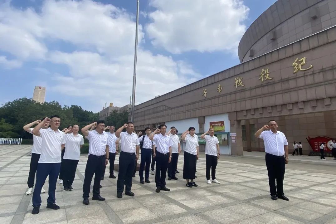 8月2日,集團(tuán)工程五部黨支部、山東貫月科創(chuàng)投資集團(tuán)公司黨支部到濟(jì)南戰(zhàn)役紀(jì)念館開展“牢記初心使命 堅(jiān)定理想信念”暨“傳承紅色文化 賡續(xù)紅色血脈”八一建軍節(jié)主題活動(dòng),進(jìn)一步深入學(xué)習(xí)貫徹習(xí)近平新時(shí)代中國特色社會(huì)主義思想,鞏固和深化黨紀(jì)學(xué)習(xí)教育成果,增強(qiáng)黨員干部的黨性修養(yǎng)與理想信念。活動(dòng)中,全體黨員先后參觀了陳列展廳和全景畫展館,重溫了入黨誓詞,并表示將以更加奮發(fā)向上的精神狀態(tài)履職盡責(zé),用更加忠誠堅(jiān)定的意志肩負(fù)擔(dān)當(dāng)使命,努力為集團(tuán)高質(zhì)量轉(zhuǎn)型發(fā)展貢獻(xiàn)力量。