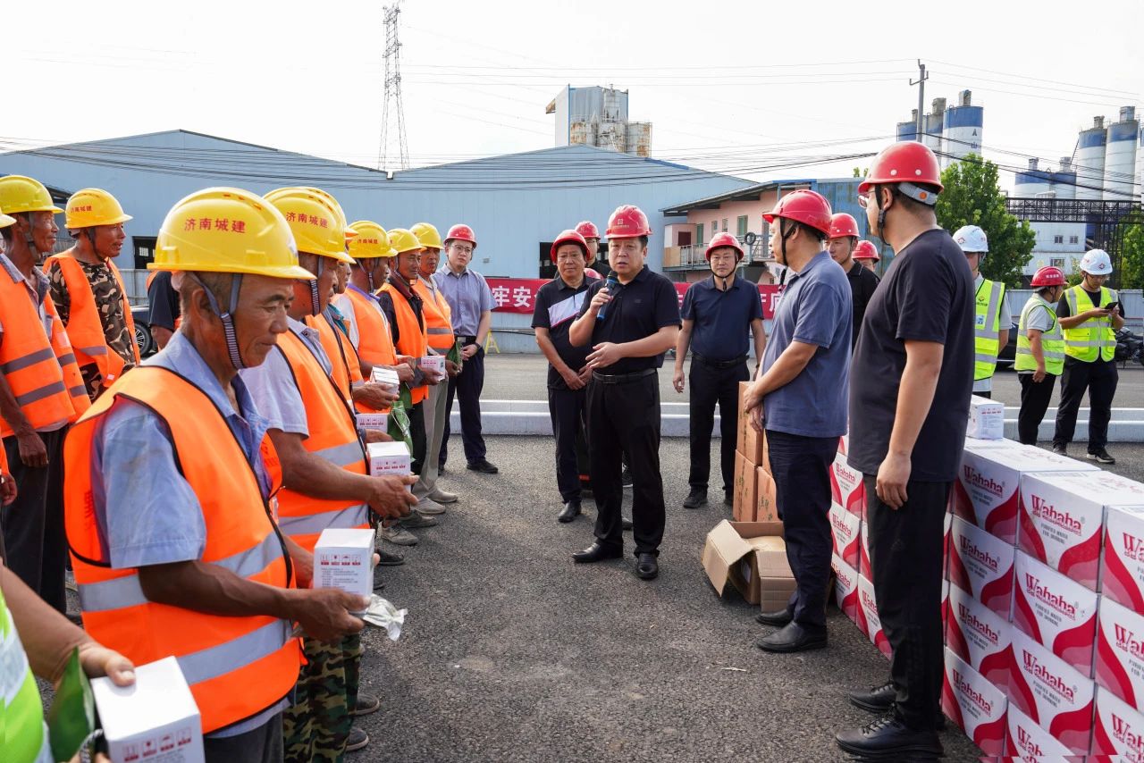 為認(rèn)真落實(shí)夏季高溫期間防暑降溫工作部署,做好高溫天氣作業(yè)勞動(dòng)保護(hù)工作,切實(shí)維護(hù)一線職工的勞動(dòng)安全健康權(quán)益,8月6日,建設(shè)集團(tuán)黨委副書記、總經(jīng)理?xiàng)罘鍘ш?duì)到項(xiàng)目一線開展“送清涼”活動(dòng),集團(tuán)總經(jīng)理助理、安全總監(jiān)解漢忠,集團(tuán)總經(jīng)理助理翟彬參加活動(dòng)。