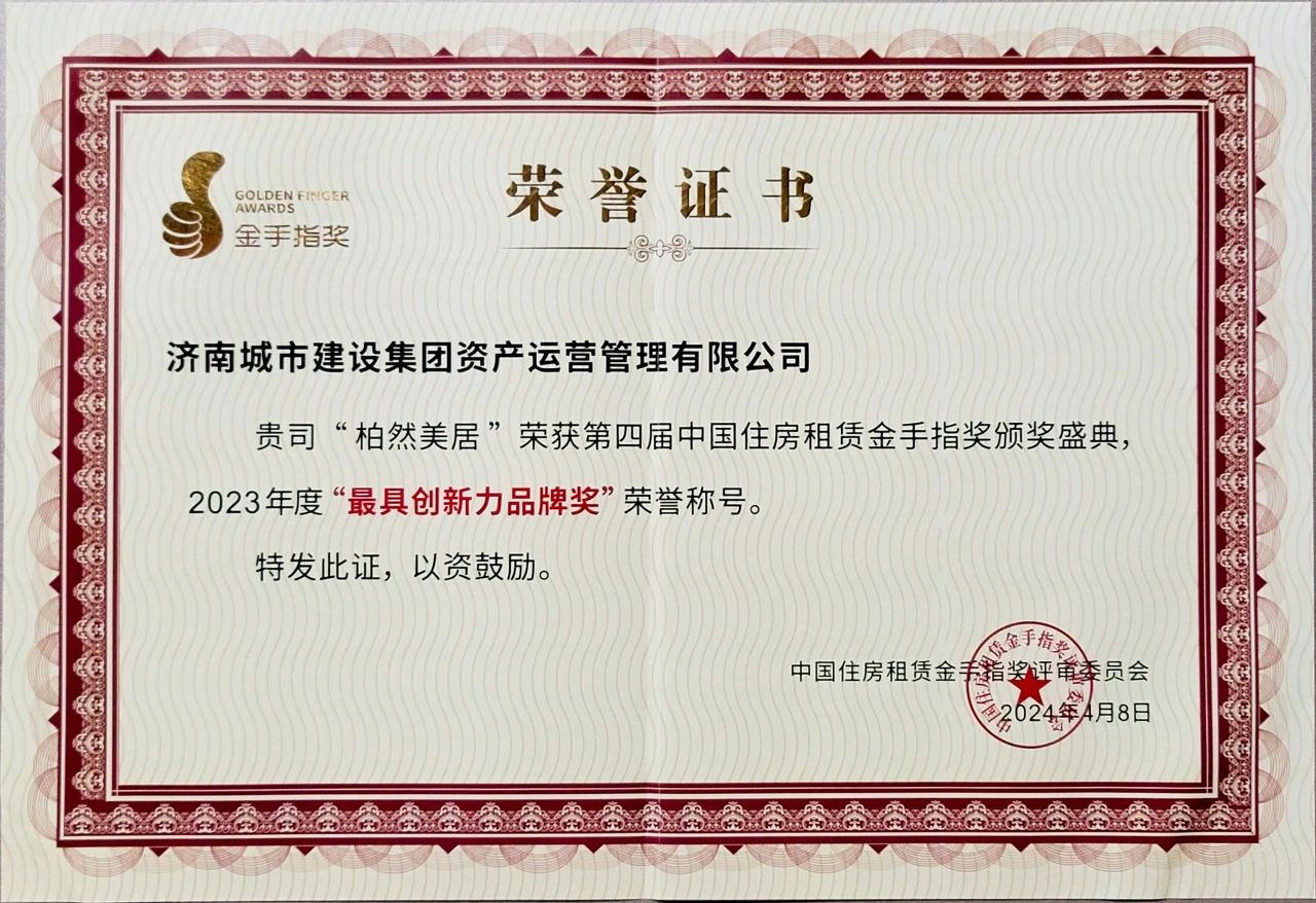 近日,在2024中國(guó)住房租賃企業(yè)家領(lǐng)袖峰會(huì)暨第四屆白云山論壇上,公布了2023年度“推動(dòng)中國(guó)住房租賃發(fā)展進(jìn)程”系列榜單,濟(jì)南城市建設(shè)集團(tuán)資產(chǎn)運(yùn)營(yíng)管理有限公司成功上榜2023年度“推動(dòng)中國(guó)住房租賃發(fā)展進(jìn)程”百?gòu)?qiáng)企業(yè),公司運(yùn)營(yíng)的保障性租賃住房“柏然美居”品牌榮獲2023年度“最具創(chuàng)新力品牌獎(jiǎng)”榮譽(yù)。