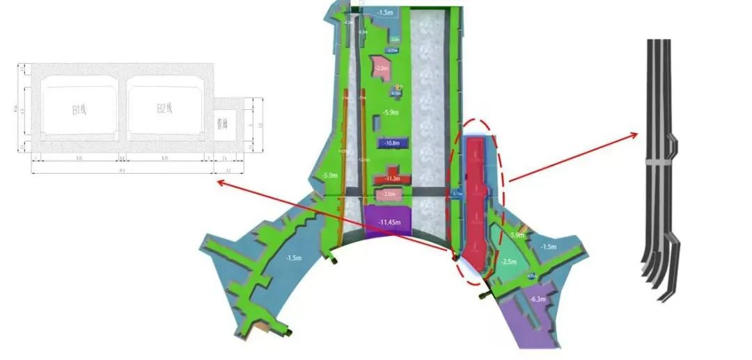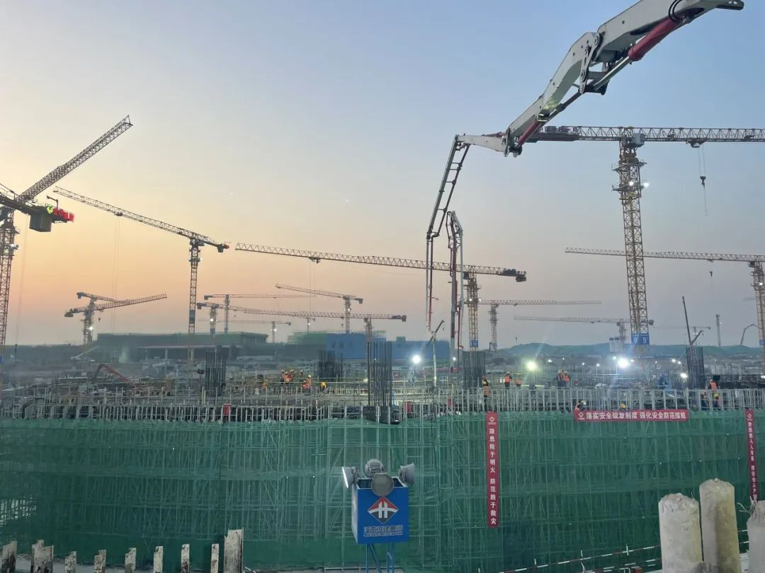 濟南遙墻機場二期改擴建工程T2航站樓項目8號下穿通道首段主體1400立方米混凝土澆筑完成,標志著項目建設(shè)取得階段性勝利。由濟南國際機場建設(shè)有限公司投資建設(shè)的濟南遙墻機場二期改擴建工程8號下穿通道位于T1航站樓西北側(cè),南北向橫穿正在建設(shè)的濟南遙墻機場T2航站樓,連接南、北工作區(qū),可以實現(xiàn)工作區(qū)車輛的南北街接,全長245米,采用雙倉分建和雙倉共建鋼筋混凝土結(jié)構(gòu),雙倉分建段尺寸標準段內(nèi)徑凈寬8.25米,凈高約7.2~7.5米,底板厚度1.2米,頂板厚度0.7米,中墻厚0.8米,側(cè)墻厚1.0米。8-1通道主體涉及高支模超危大工程,墻體厚、高度寬度均漸變、圓弧線性,橫穿8條斜交梁,多處異型柱,與中建三局八局預(yù)留預(yù)埋交叉施工,結(jié)構(gòu)復雜,施工難度大。自項目啟動以來,項目部秉持精益求精的態(tài)度,攻堅克難,順利完成8號下穿通道首段主體澆筑節(jié)點目標。