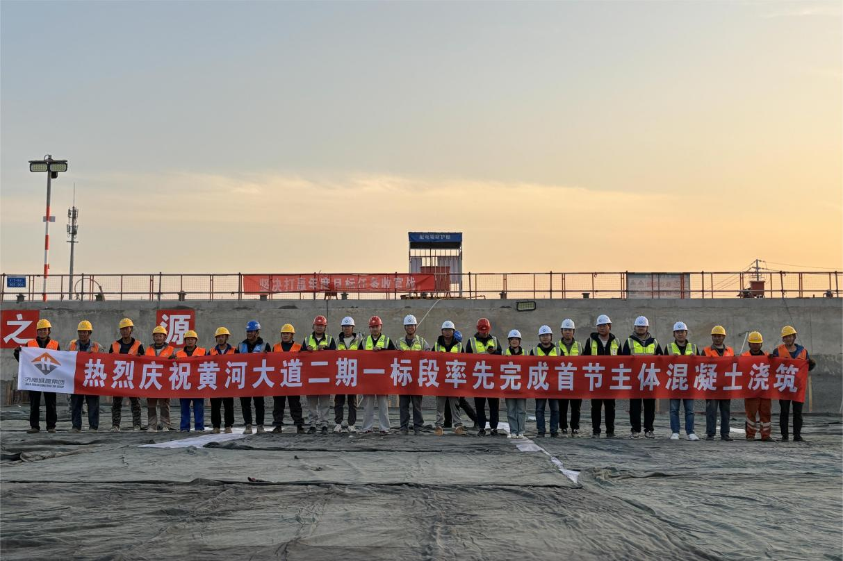 濟南黃河大道二期工程施工一標段率先完成首節(jié)主體混凝土澆筑。黃河大道二期工程首節(jié)主體長35米,寬30.3米,高9.2米,由底板、側(cè)墻、頂板三部分組成,所用材料主要為C40補償收縮混凝土,抗?jié)B等級P10。為了保障主體混凝土澆筑質(zhì)量與進度,項目部周密策劃組織施工,積極落實澆筑技術(shù)質(zhì)量安全交底,統(tǒng)籌調(diào)配人材機配置與進場,鉚足干勁、團結(jié)協(xié)作,順利完成首節(jié)主體混凝土澆筑。作為濟南新舊動能轉(zhuǎn)換起步區(qū)的重點項目,首節(jié)主體澆筑是黃河大道二期工程建設(shè)的又一重要工程節(jié)點。