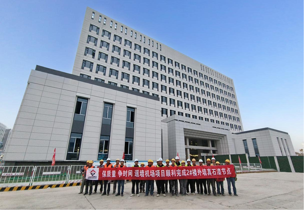 歷經(jīng)50天施工,濟南遙墻機場配套設(shè)施項目2#邊檢物業(yè)用房外墻真石漆分項工程順利完工,項目2#邊檢業(yè)務(wù)用房含邊檢辦公用房和邊檢備勤用房,建成后將做為濟南遙墻機場邊防檢查業(yè)務(wù)的主要辦公用房。本項目外墻真石漆面積13280平方,整體以乳白色為主色調(diào),外窗上下輔以灰色及白色點綴,整體設(shè)計莊重大氣,線條簡單分明。