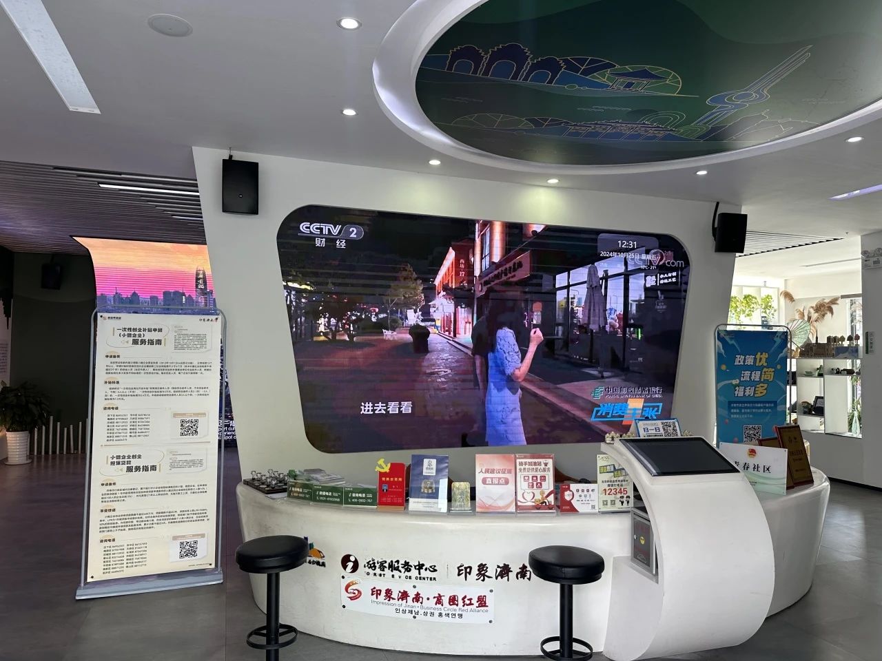 印象濟南·泉世界對接槐蔭區(qū)人社局打造了濟南市首家商圈就業(yè)驛站——印象濟南商圈就業(yè)驛站,通過政府、企業(yè)、社區(qū)聯動,最大限度整合商圈各類資源,打造出一個集創(chuàng)業(yè)推介、需求歸集、崗位推送、能力提升、職業(yè)指導、精準匹配、政策宣傳等多功能于一體的“一站式”創(chuàng)業(yè)賦能中心。