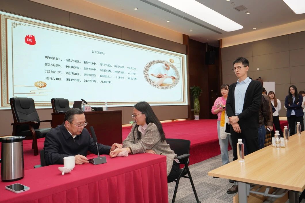 講座內(nèi)容涵蓋了中醫(yī)養(yǎng)生理念、常見職業(yè)病的中醫(yī)防治、中醫(yī)保健方法、兒童常見病及推拿案例展示等多個方面,還針對辦公室一族常見的職業(yè)病,如頸椎病、腰椎病等,提供了中醫(yī)防治的實用建議;李濤老師現(xiàn)場為員工把脈問診,結(jié)合體質(zhì)辨識給出個性化調(diào)理方案。