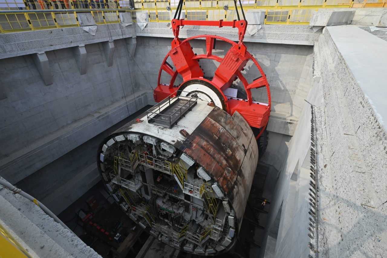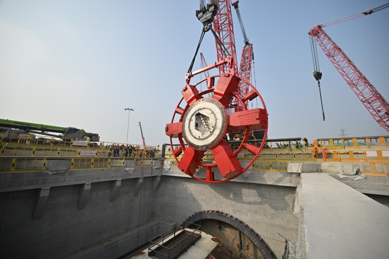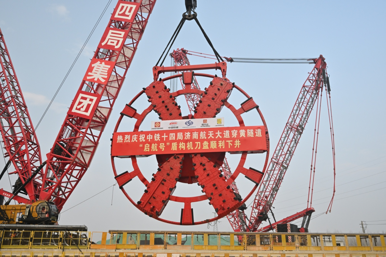 3月1日,直徑15.06米的超大直徑盾構(gòu)機(jī)“啟航號”刀盤在兩臺履帶吊助力下完成“空中轉(zhuǎn)體”后緩緩下井,與盾構(gòu)機(jī)精準(zhǔn)“合體”,標(biāo)志著由濟(jì)南城市建設(shè)集團(tuán)投資建設(shè)、中鐵十四局集團(tuán)承建的濟(jì)南市航天大道穿黃隧道盾構(gòu)機(jī)主機(jī)基本組裝完成,即將進(jìn)入調(diào)試階段。