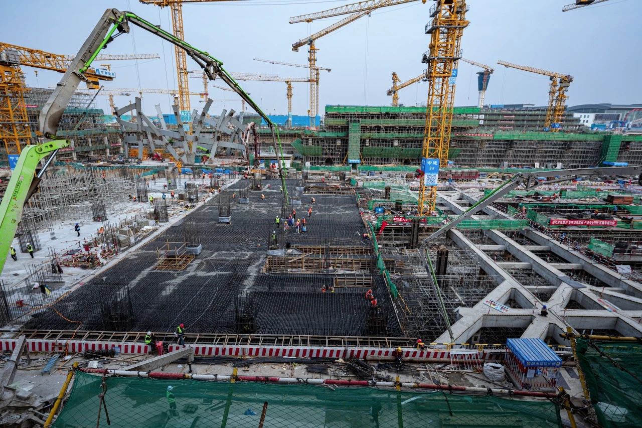 在新建60萬㎡T2航站樓施工現(xiàn)場,項(xiàng)目A指廊正在進(jìn)行樁基施工,B指廊正在進(jìn)行地上結(jié)構(gòu)施工,C指廊已完成主體結(jié)構(gòu)封頂并正在進(jìn)行鋼結(jié)構(gòu)網(wǎng)架吊裝。主樓三、四區(qū)正在進(jìn)行地下結(jié)構(gòu)施工,主樓五區(qū)主體結(jié)構(gòu)已施工至地上二層。