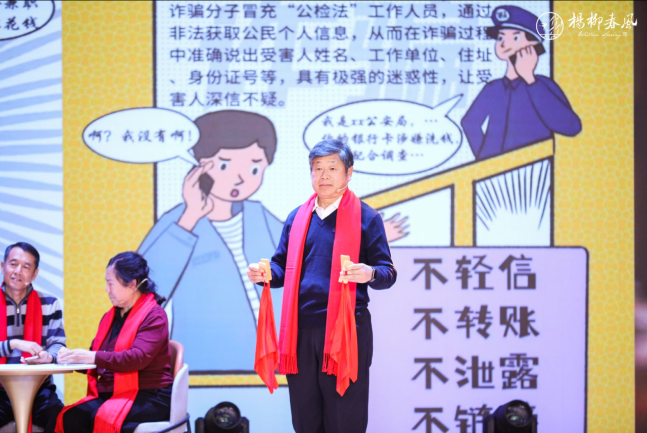 頤樂學院的老師和學員們帶來了《梁祝》和《歌頌祖國》,用不同的樂器演奏出時代的聲音?;笔a區(qū)派出所的離退休老干部將反詐知識融入快板,節(jié)目既幽默有趣又具有警示意義,讓觀眾坐得住、聽得進、記得牢。